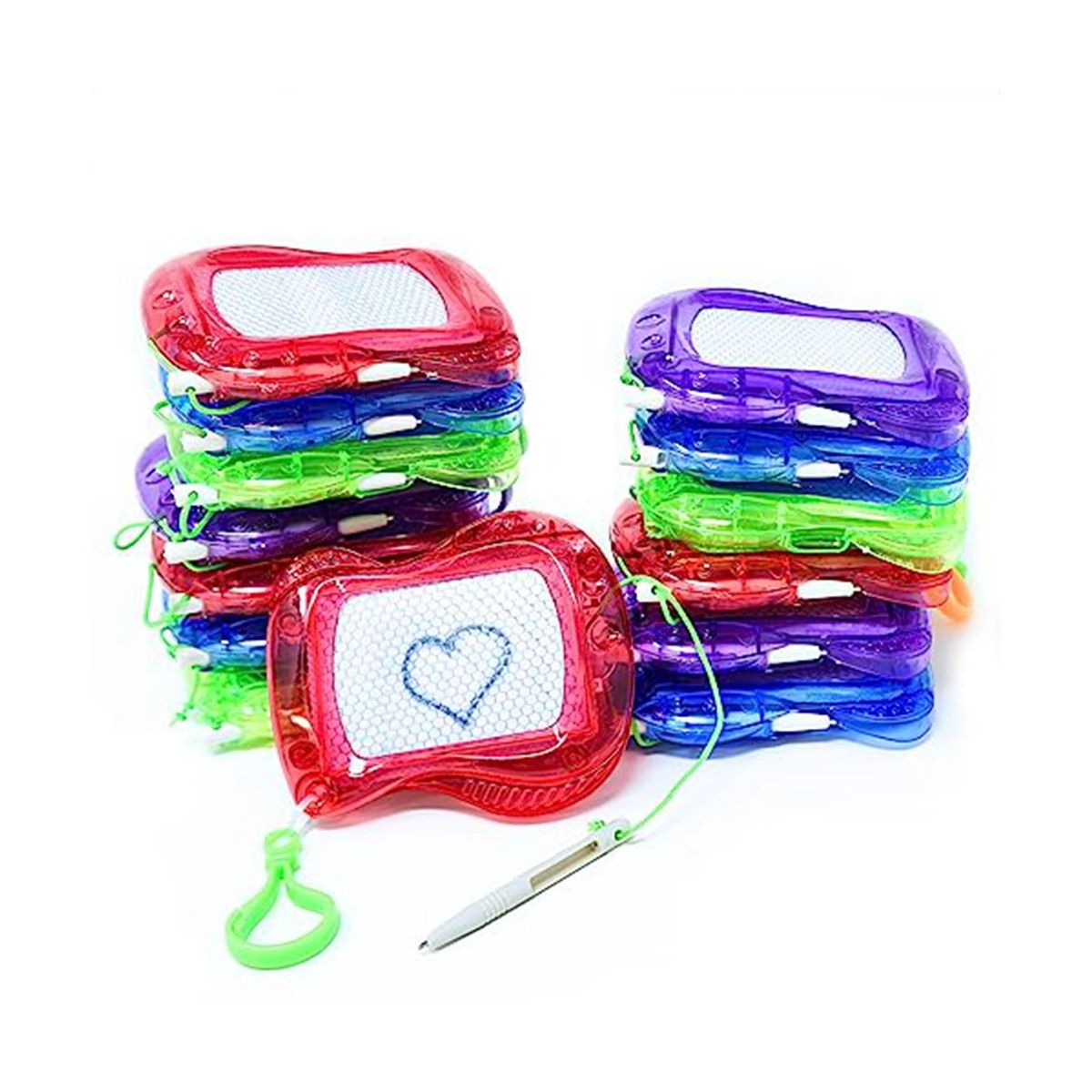 Detailed Information About The Product:12 PACK - This set includes 12 mini drawing tablets in 4 different colors, blue, green, purple and red. There are 3 boards of each color. Each board measures 3.25 x 4 inches and is individually wrapped, making it perfect for kids to play with.