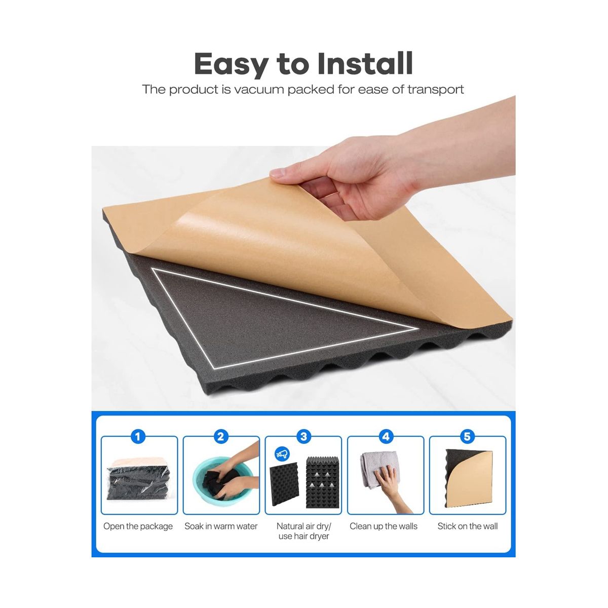 Studio grade sound absorbing product that will dampen high mid and low frequency sounds Get the true home theater sound by insulating the surrounding walls and reducing unwanted echoing and vibrations This product is perfect and a must for multiple environments that require clarity and lower sound waves for professional recording whether it's podcasting or a video conference call our acoustic foam panels will help enrich your sound quality experience