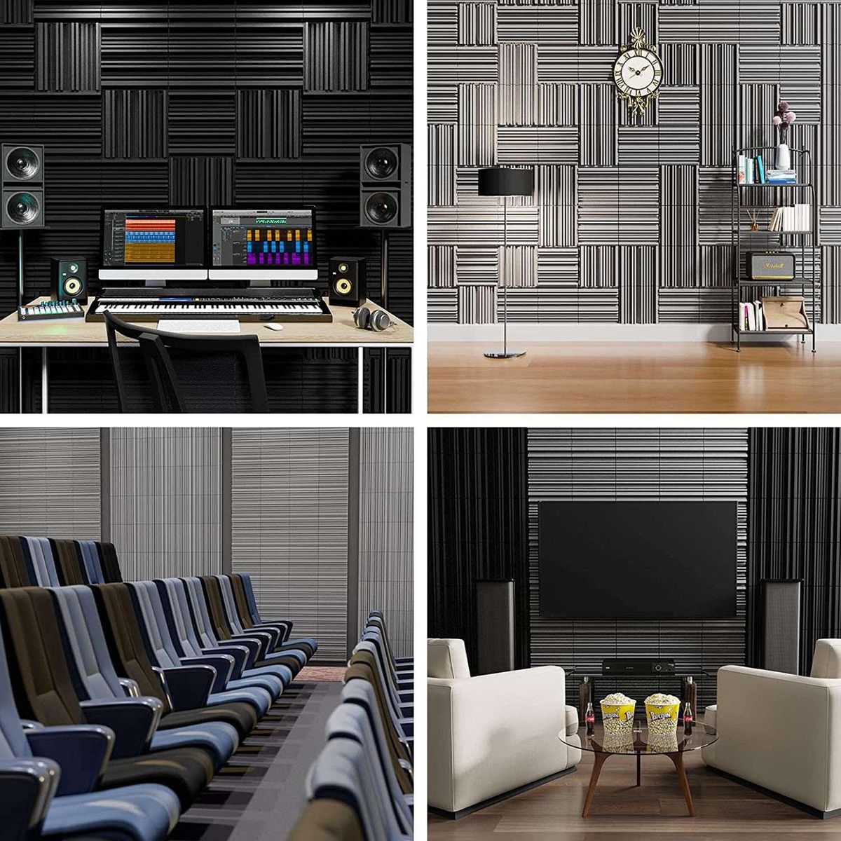 Sound insulation panels are multifunctional and can be used in professional studios rehearsal rooms concert podcasts churches home theaters vocal kiosks home studios offices private spaces for men and kennels Sundries etc By using the absorption panel to eliminate unnecessary sounds other sounds can be made clearer