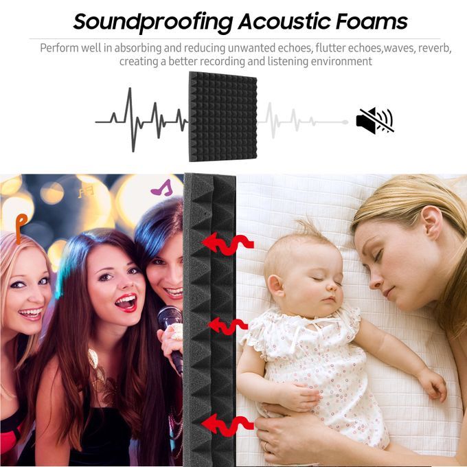 x Perform well in absorbing and reducing unwanted echoes, flutter echoes, waves, reverb, creating a better recording and listening environment.