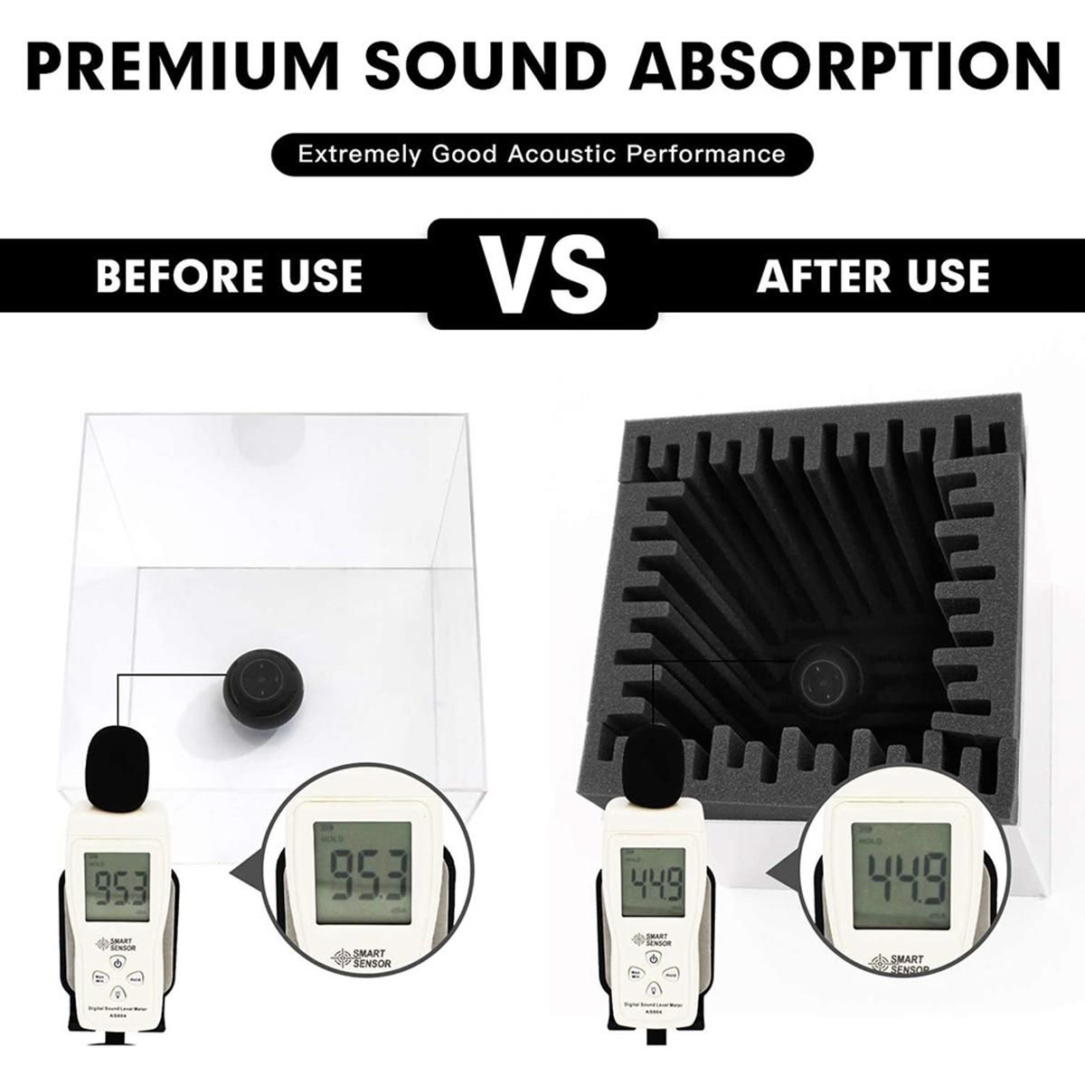 Wide Application - These panels do bring down unwanted echoes, natural reverb and high frequencies bouncing in the room when recording vocals or some acoustical instrument. Colour: Black