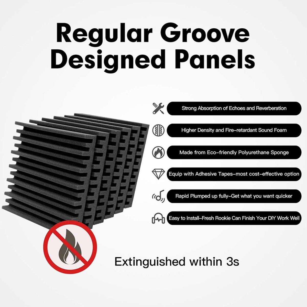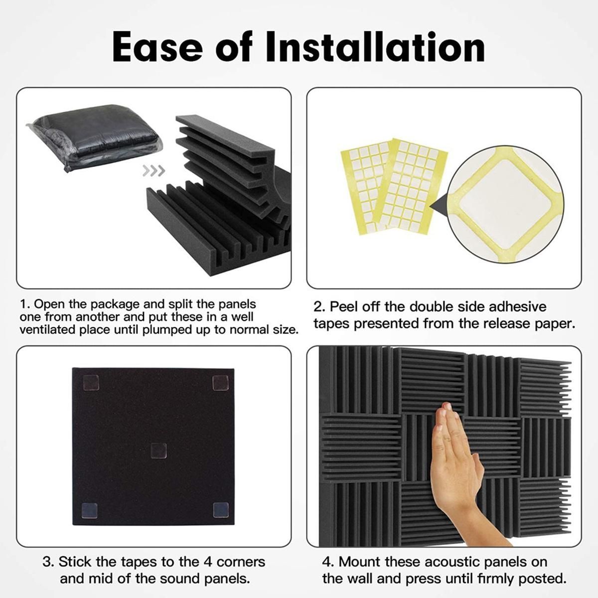 Double Side Adhesive Included - unique groove acoustic panels comes with double side tapes which work with walls. It's easy to shape and cut to size, even a green hand can easily mount these sound panels onto the wall or ceiling