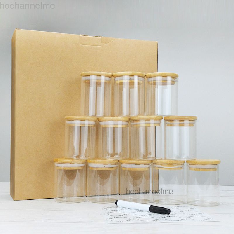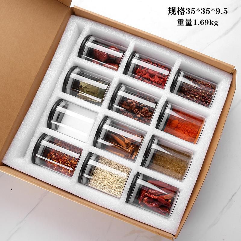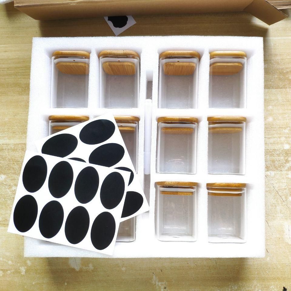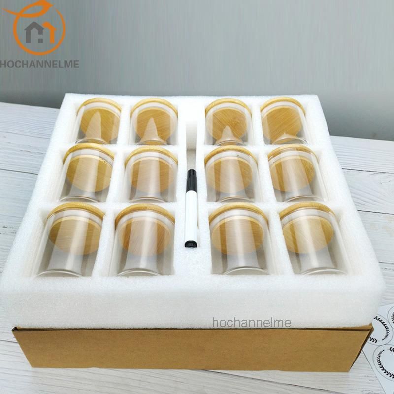 1X 12 Pcs 6.5x8cm Glass Kitchen Storage Jars For Spices With Bamboo Cover Seasoning Airtight Container Condiments Organizer