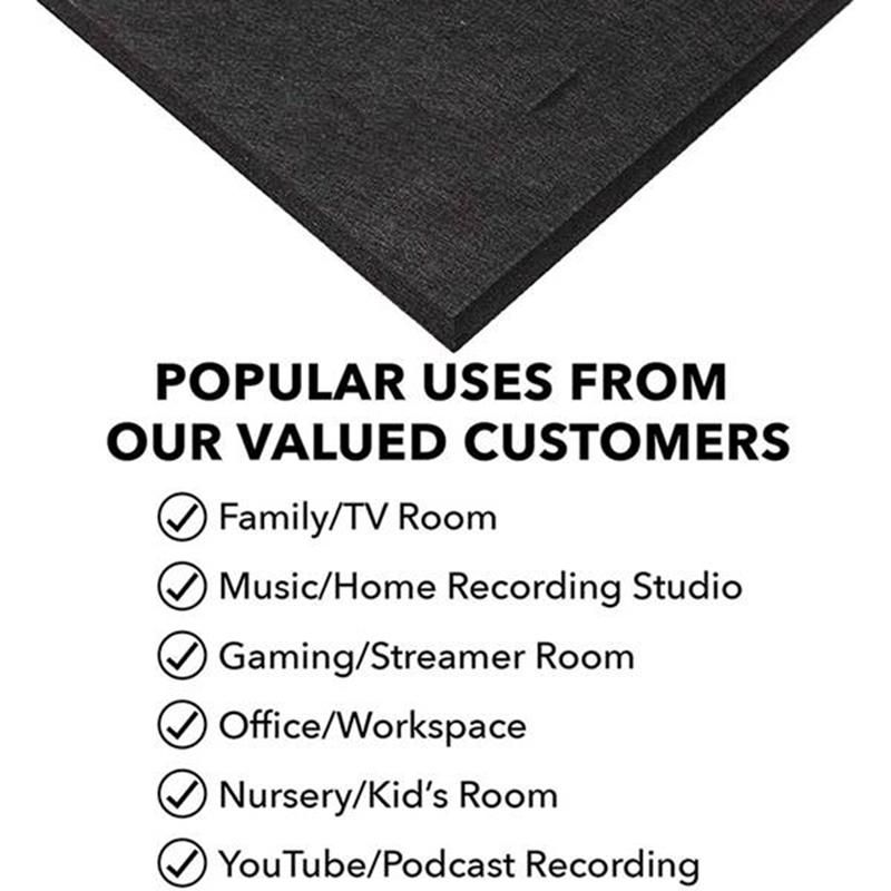 IMPROVED ACOUSTIC QUALITY: These noise-insulation panels are multi-purpose, it can make offices quieter and make audio recordings cleaner. And can be used for professional studios, rehearsal rooms, concert , podcasting, churches, home theaters, vocal booths, home studios, offices, man caves and more.
