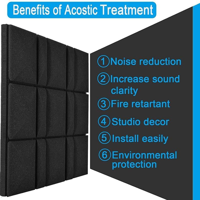 Detailed Information About The Product:3D acoustic design: Our 2-inch foam can provide moderate sound control on the wall or ceiling. It is very suitable for individuals to reduce and absorb unnecessary echo, wave, reverberation and floating echo.