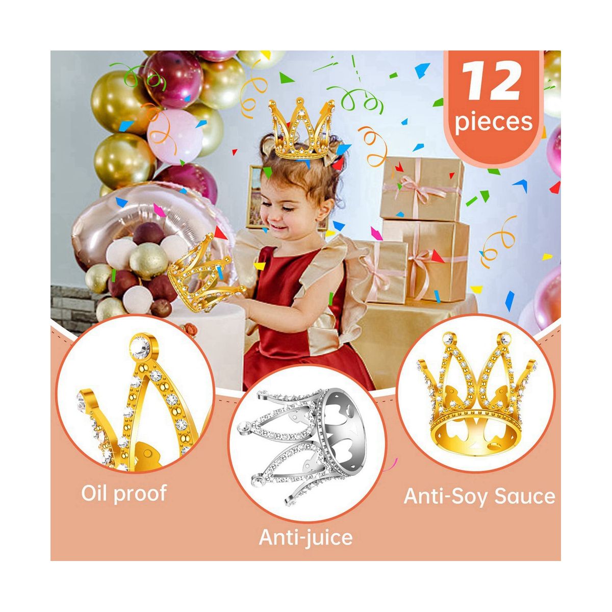 Crown Cake Topper Set: set includes 6 gold mini crown cake topper and 6 silver mini crown cake topper. Abundant quantities, classic styles can meet your needs.