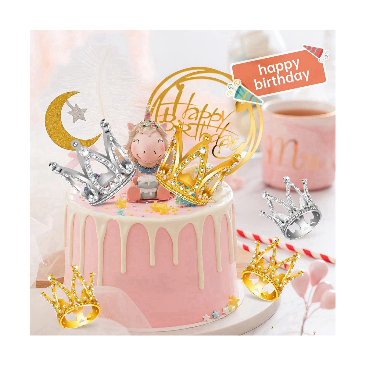 Beautiful Crown Design: These mini crown cake toppers are embellished with crystal rhinestone, which is very delicate and impressive. It is not only a glamorous cake decoration, also a princess .