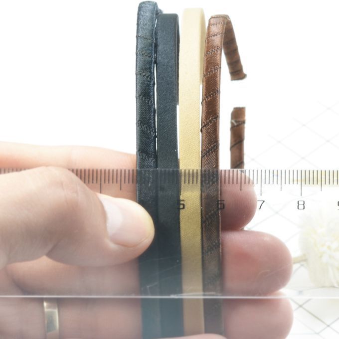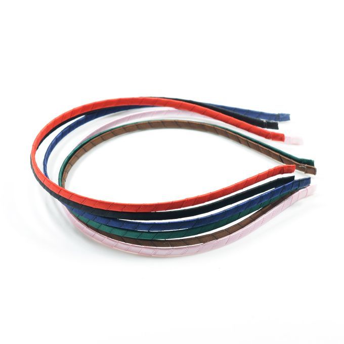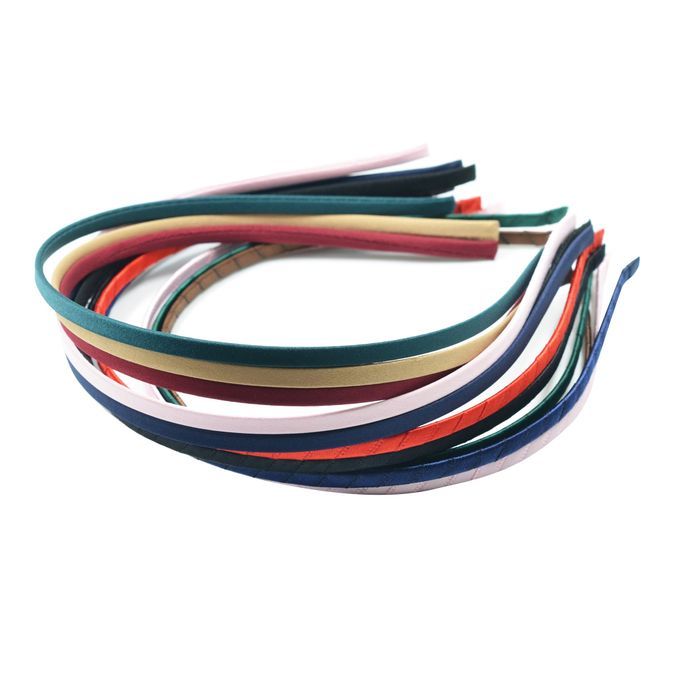 Satin fabric or grosgrain ribbon are wrapped covered on plain craft headband blanks.