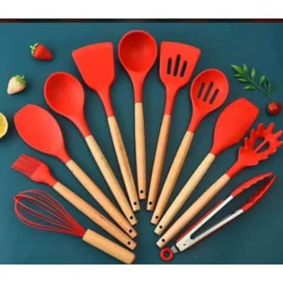 Silicone Utensil Set is Kitchen helper, perfect for all types of foods and cooking & kitchen accessaries, stir fry, stirring creams, butter, ice creams etc. Include spatula ,basting brush ,pointed spatula ,round-edge turner, ladle, straight-edge turner, Spoon, tongs, pasta fork and perfect for all types of foods and cooking.