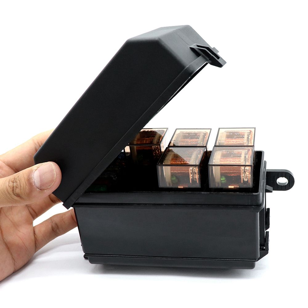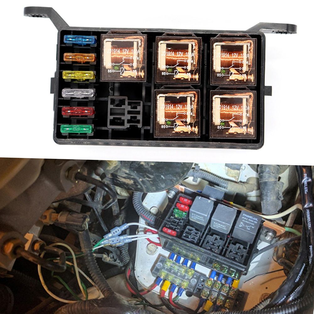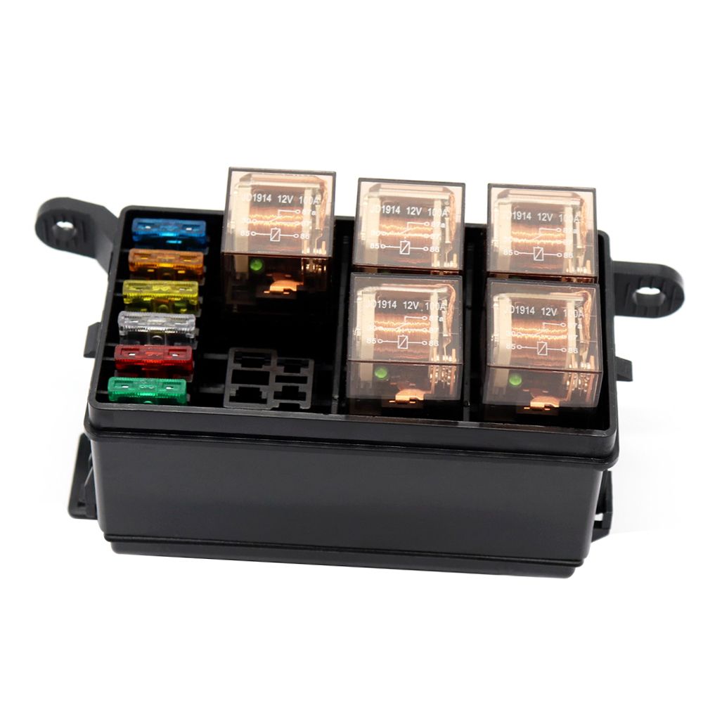 Holds up to 6 individual relays and 6 ATO/ATC standard blade fuses. It also comes with 6 relays and 6 fuses(5A,10A,15A,20A,25A,30A). A complete set for you.
