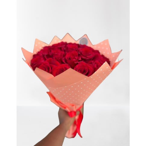 This rose bouquet consists of 12 beautiful deep red roses that exude a delicate fragrance.