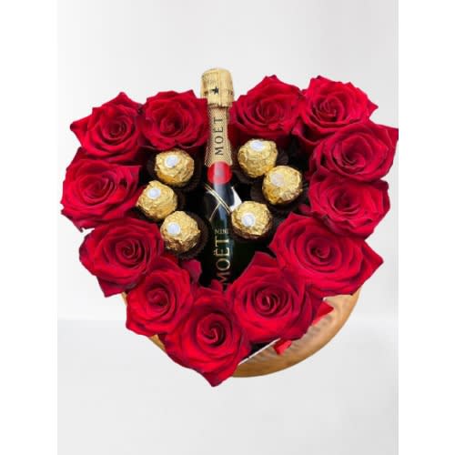 12 Stem Fresh Red Roses - Mini Moet & Chocolate In A Box