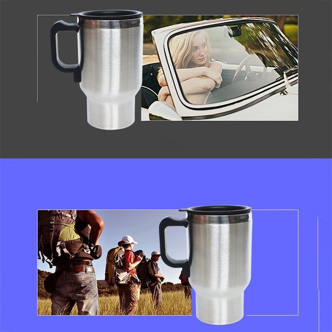 12 V Steel Thermos Heating Up Ar Auto Adapter Heated Kettle Travel 0ml-silver
