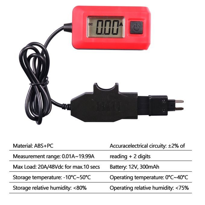 The tester can be used to measure current at the fuse box of standard fuse. It is perfect for fault finding on automotive or commercial vehicle electrical circuit.