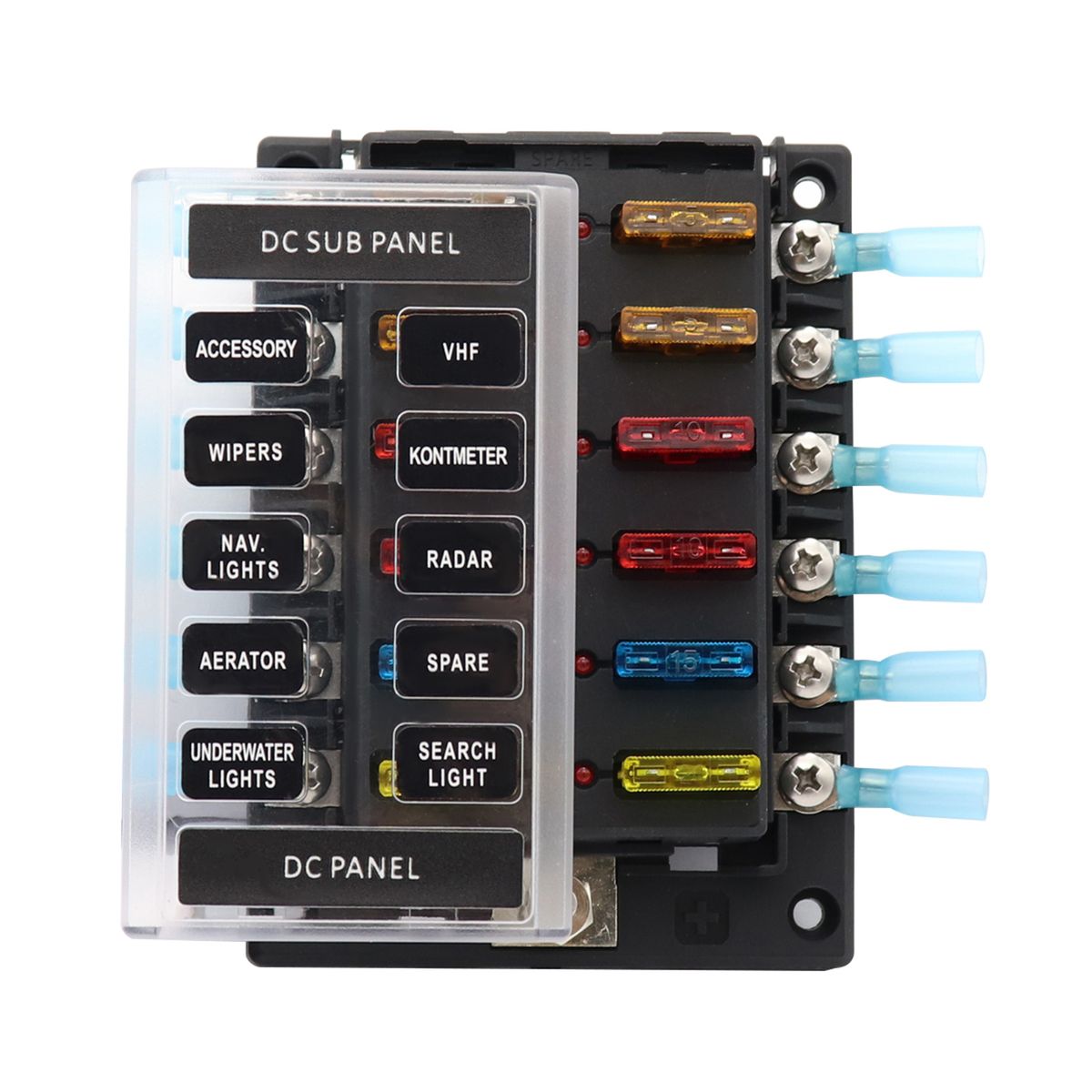 12 way fuse block fit cars, RV, bus, yacht, boat. Can be directly connected to any electrical circuit on the car or ship.