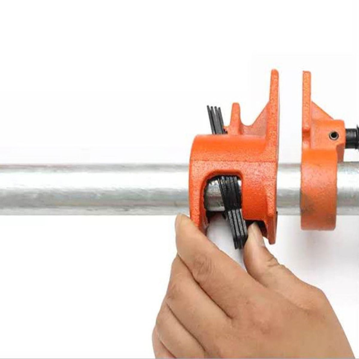 Just slide the pipe clamp through any length 1/2 in pipe to hold wood in place for gluing and drilling.
