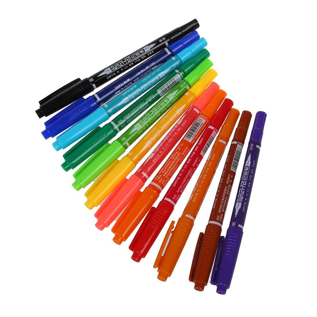12 x Colors Double Ended Permanent Art Drawing MarkersMade of PP material. Wear-resistant and environmental-friendly.