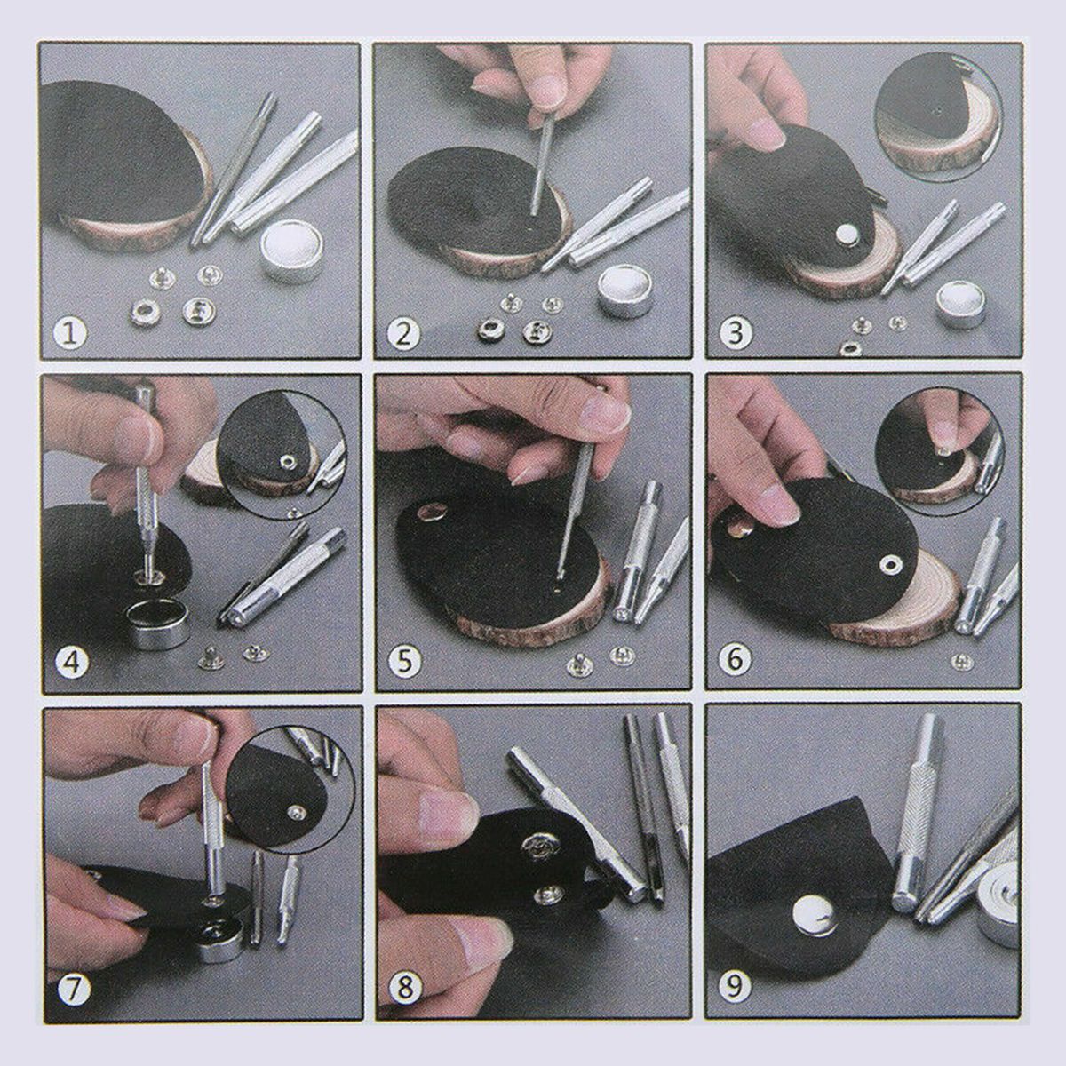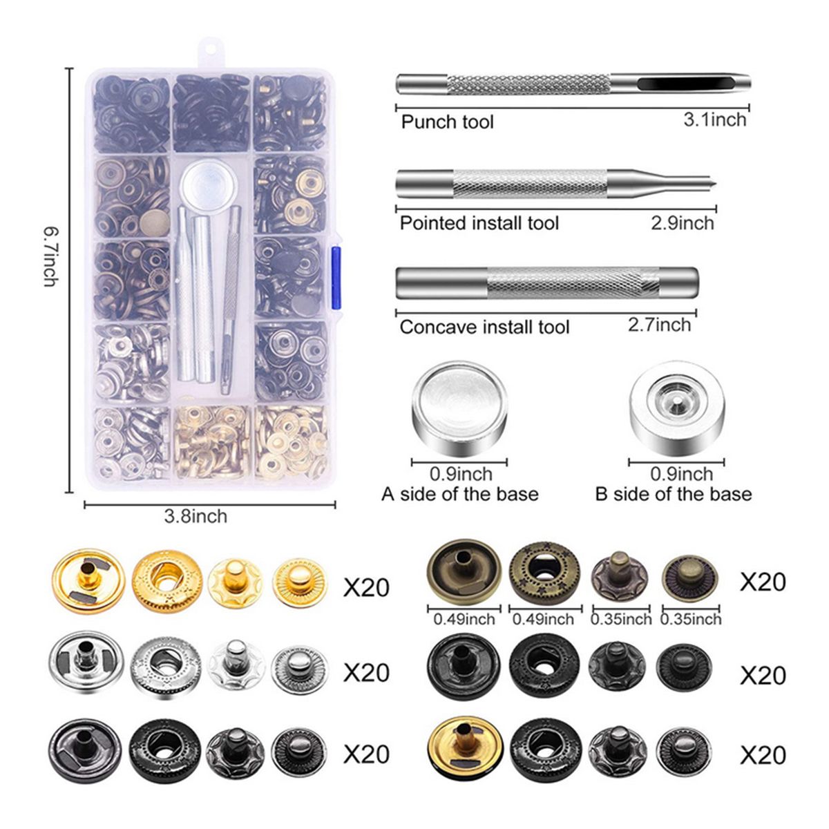 The 120 sets leather snap fasteners kit includes 6 colors and 20 sets snap fasteners, used on thin fabric and leather.