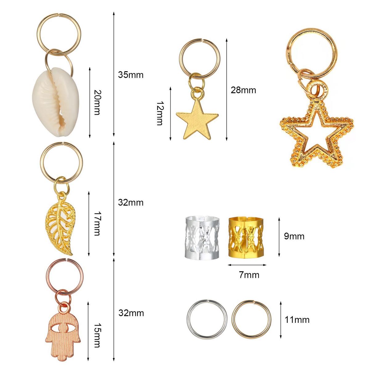 120 Pieces of hair rings in different styles are included.