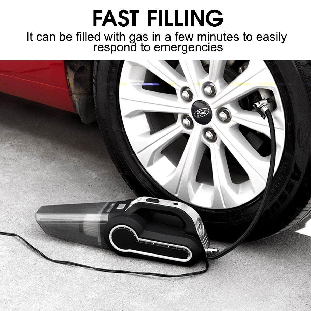 Function: dust collect, air inflation, lighting, tire measurement
