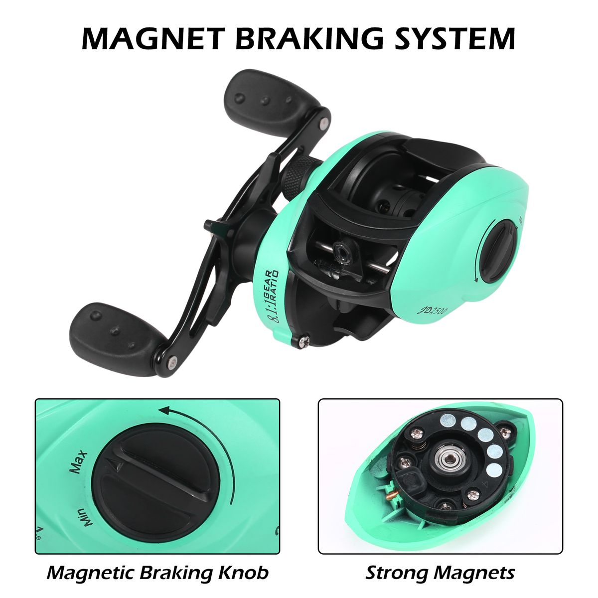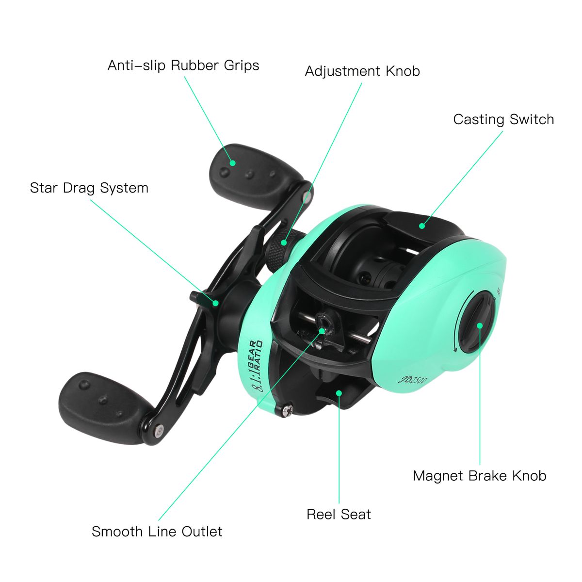 8.1:1 gear ratio gives high speed performance and smooth fishing time.