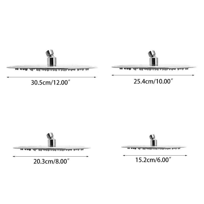 Rain Shower Head High Preure, 12/10/8/6 Inch Stainle Steel Rainfall Showerhead, Mirror-like Look, Easy Installation, Swivel Spray Angle, Voluptuous Shower Experience, Finish Features: Made from stainle steel with polished finish to ensure a highly reflective mirror finish effect Suitable for wall or ceiling mounting Elegant, Powerful, Excellent performance at high or low water preure Superior Rain Shower Head for the ultimate shower experience Quickly connects to any standard shower arm Healthy & environmental protection, air preureed & no blocking, take care every inch of your skin The entire shower head body is made of solid stainle steel finish is highly reflective for a mirror-like look that works with any decorating style Different inches of showerhead offer you a very special shower experience Thickened bra swivel ball joint is anti-fracture and durable. Just taking few minutes to connect the G1/2 female thread with shower arm can extremely easy to install the entire shower head in place, without tools, and the swivel angle for various family members' spray direction can be preferably customized. finish shower head is highly reflective for a mirror-like look that works with any decorating style, agele yet fashion-forward presence. Whole body of the shower head spray face is seamlely molded from heavy duty solid grade 304 stainle steel, has excellent corrosion, leaking, high preure and temperature resistance. Specifications: Material: 304 Stainle Steel Color: Silver Diameter: 10cm(4") 15cm(6") 20cm(8") 25cm(10")30cm(12") Quantity: 1 Pc Note: 1.Transition: 1cm=10mm=0.39inch 2.Please allow 0-3cm error due to manual measurement. pls make sure you do not mind before you bid. 3.Due to the difference between different monitors, the picture may not reflect the actual color of the item. Thank you! No Retail Package Package includes: 1 Pc x Shower Head(Other Acceories are not included)