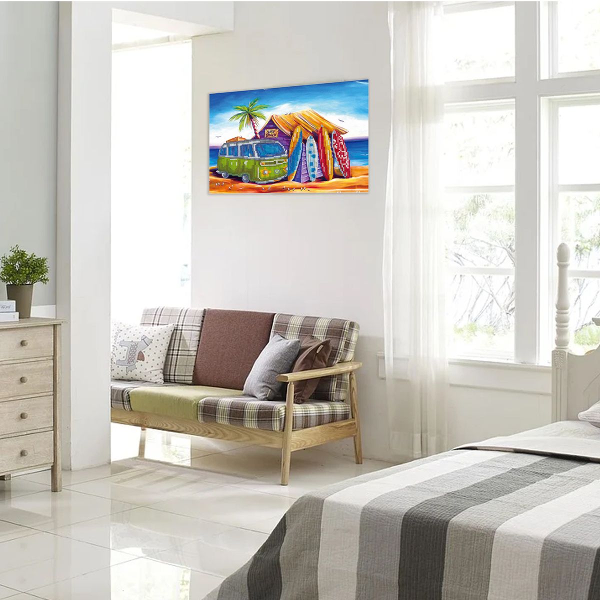 Colorful pattern diamond painting, which consists of high definition canvas amp; resin rhinestones, is a vivid interior decoration for your home. Please keep the rhinestones away from kids so as to avoid being swallowed by them accidentally.
