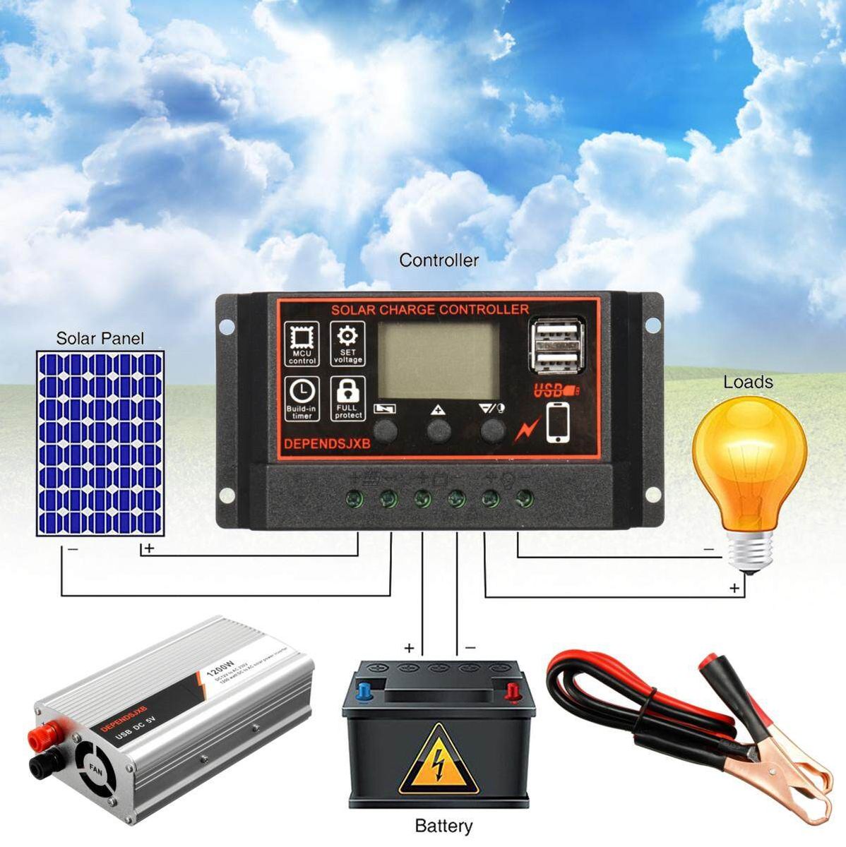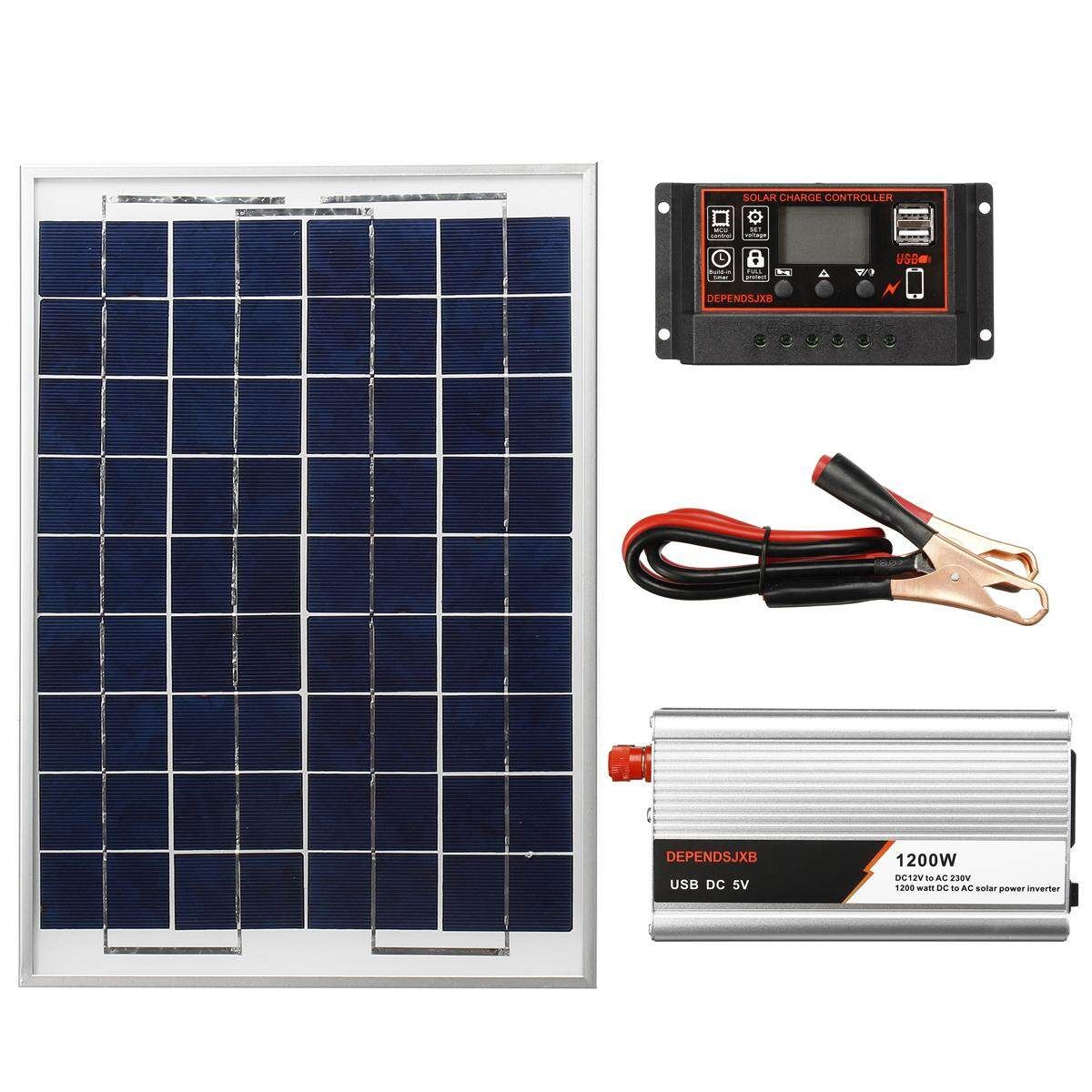 1 X Solar Panel 1 X Controller 1 X 1200w Inverter 2 X Clip 1 X English Manual