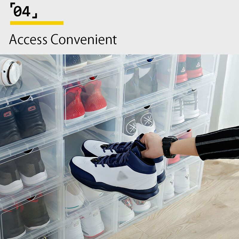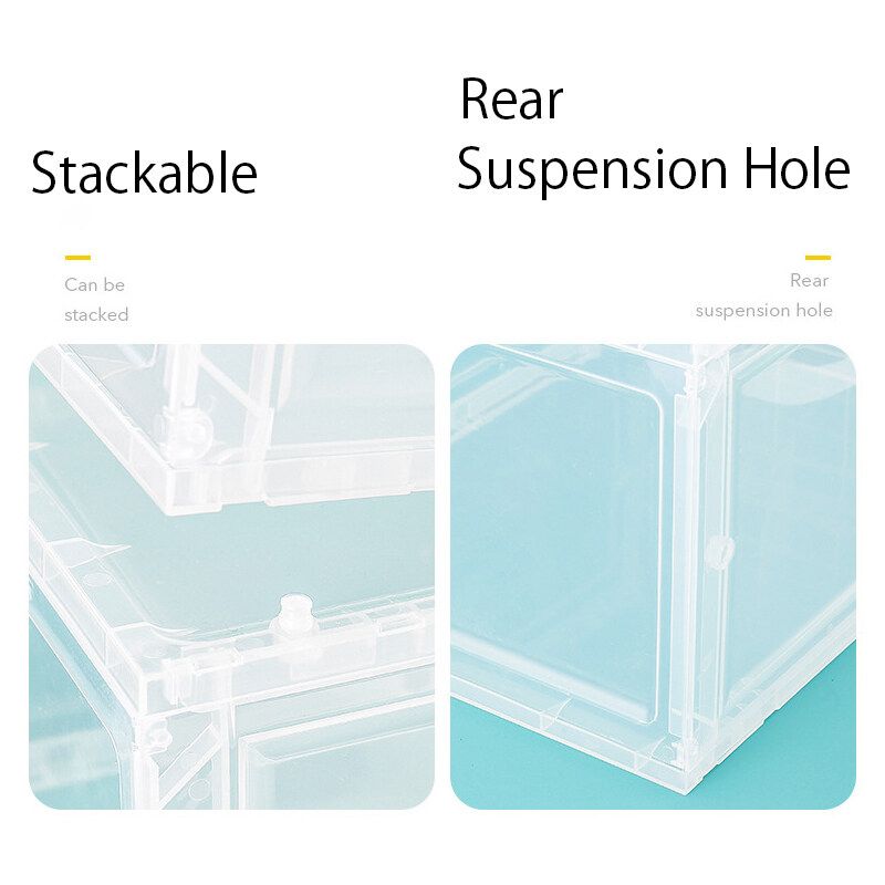 1. Clear display: Material-. with flip hole, easy to open show off the panorama of your cool sneakers and you can find the right shoes easily without opening all the boxes.