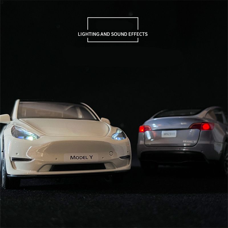 1X 1:24 Tesla Model Y SUV Alloy Car Model Diecast Toy Vehicles Car Model Simulation Collection Sound and Light Childrens Gift