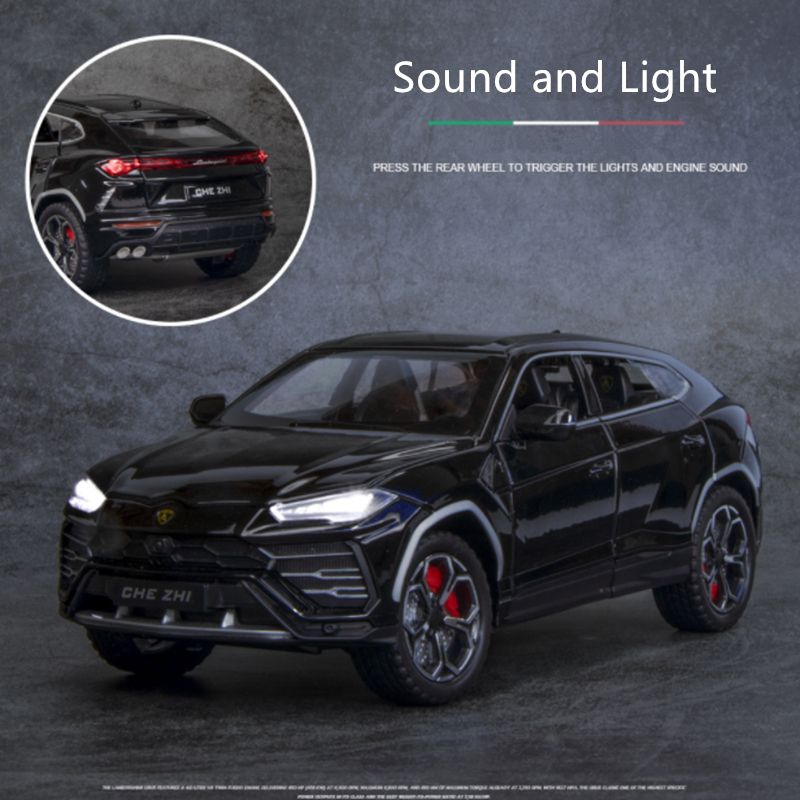 Details:Material: Alloy,PlasticScale:1:24Package includes: 1pc Alloy Model1:24 URUS Bison SUV Alloy Sports Car Model Diecasts Off-road Vehicles Car Model Simulation Sound and Light Kids Toys Gift