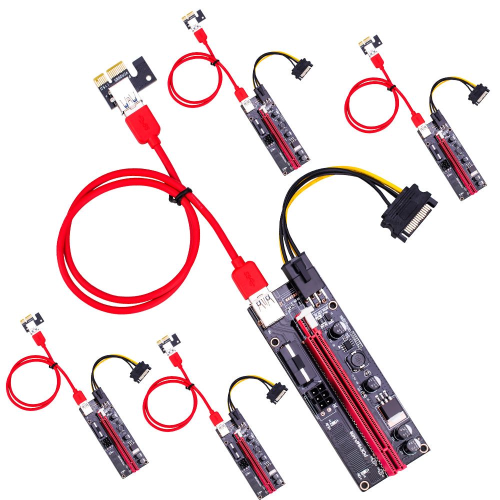 1X 1/2/4Pcs PCI-E pcie Riser 009S Express 1X 4x 8x 16x Extender Riser Dual 6Pin PCI E Adapter Card SATA 15pin for BTC Miner