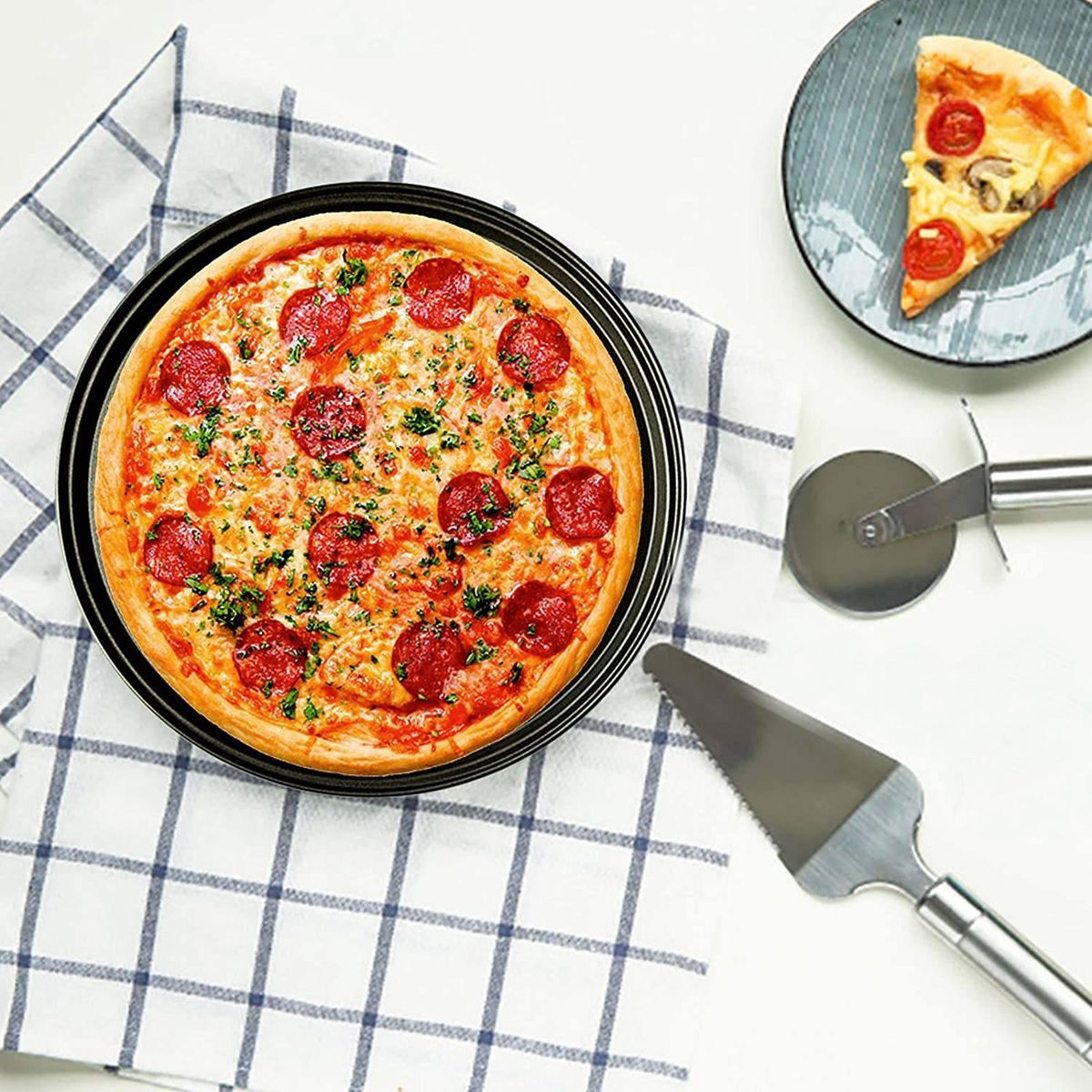 Multipurpose pizza pan: Each pizza shape is flat, small, handy and can also be used as a pizza board. Suitable for families, restaurants and other occasions