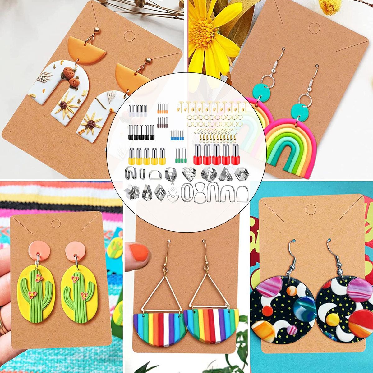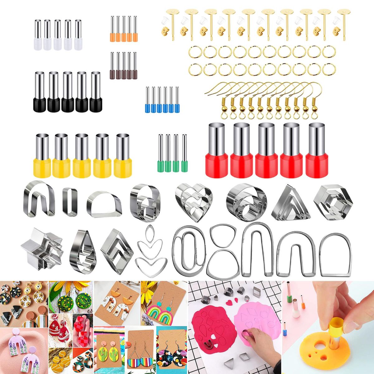 polymer clay cutters;polymer clay cutters earrings jewelry making;polymer clay tools molds cutters shapes metal;ceramic earring kit supplies tool set adults kids;jump rings jewelry making diy biscuit fondant;accessories craft art earring hooks cards pastry