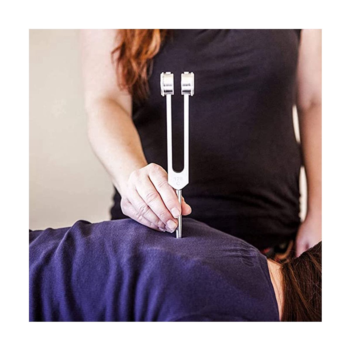 The 128 Tuner is especially effective when placed on the rib heads, thoracic vertebra, sternum, and illiums. Two Tuners tapped gently on the knees and held to the ears create a beautiful sustained low tone, which is excellent for grounding and relaxation