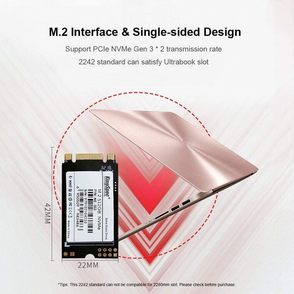 Specification:Brand: KingSpecCapacity: 128GB/256GB/512GB/1TB (optional)Interface: M.2Flash Type: 3D NANDSequential read/write (MB/sec, max): 2400/1700MB/S (max)Trim and Support:Working temperature: 0~70 degrees CelsiusStorage temperature: -20 degrees Celsius to 75 degrees CelsiusProduct size: 42*22mmPacking list: 1*SSD