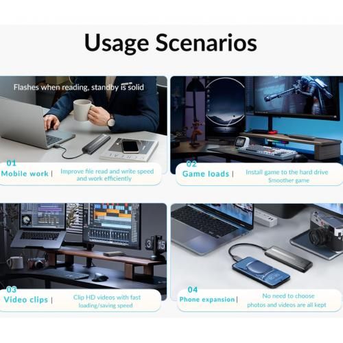 1. Heat Dissipation: Built-in Metal cooling vest + silicone thermal pad, heat dissipation is fast, and the heat dissipation efficiency is 20%-30% higher than that of ordinary ssd enclosures. PS: SATA 5Gbps Model is not included cooling vest and thermal pad.
