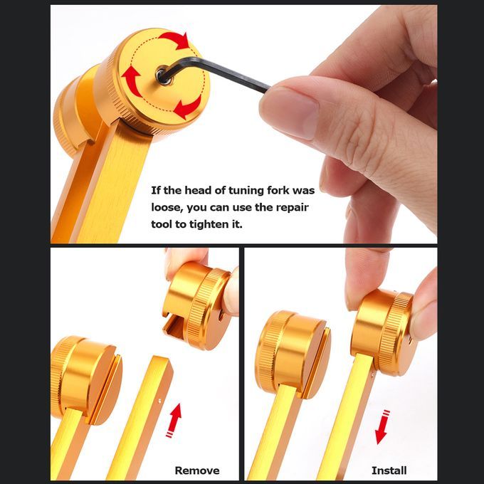 If the head of tuning fork was loose, you can use the repair tool to tighten it.