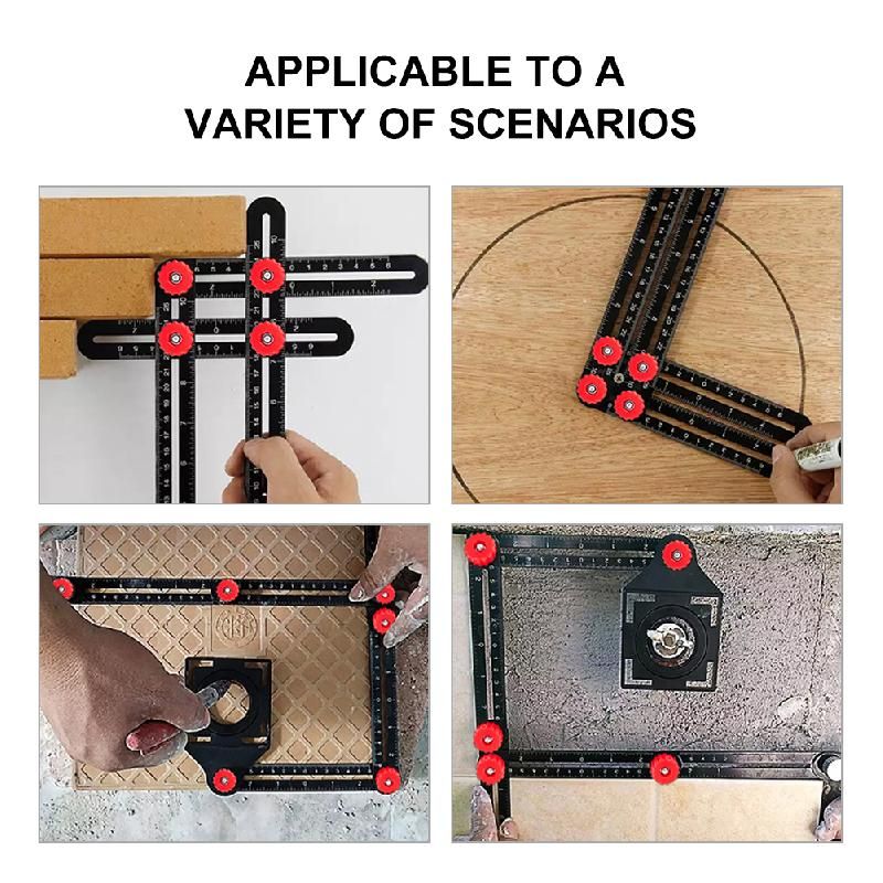*4. Upgraded Angle Measuring Ruler: This multi-angle measuring ruler is newly upgraded with rich functions. It is a measuring tool and a ceramic tile positioning hole opener. Other commonly used measuring ruler is only a four-side ruler. The upgraded universal angle ruler has a six-side ruler. Just adjust six metal knobs to create the exact shape you want. You can quickly measure objects of different shapes.