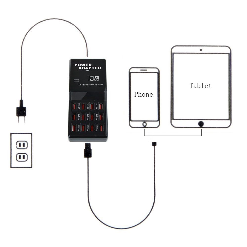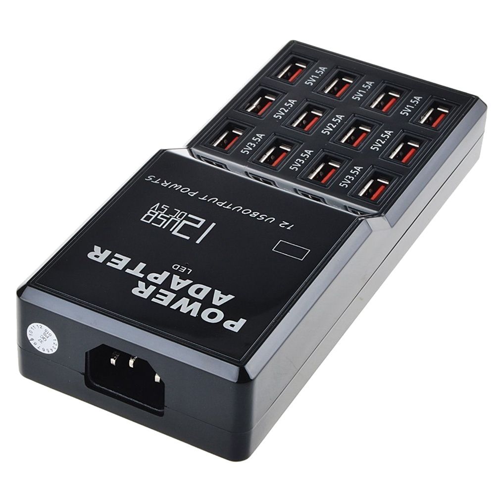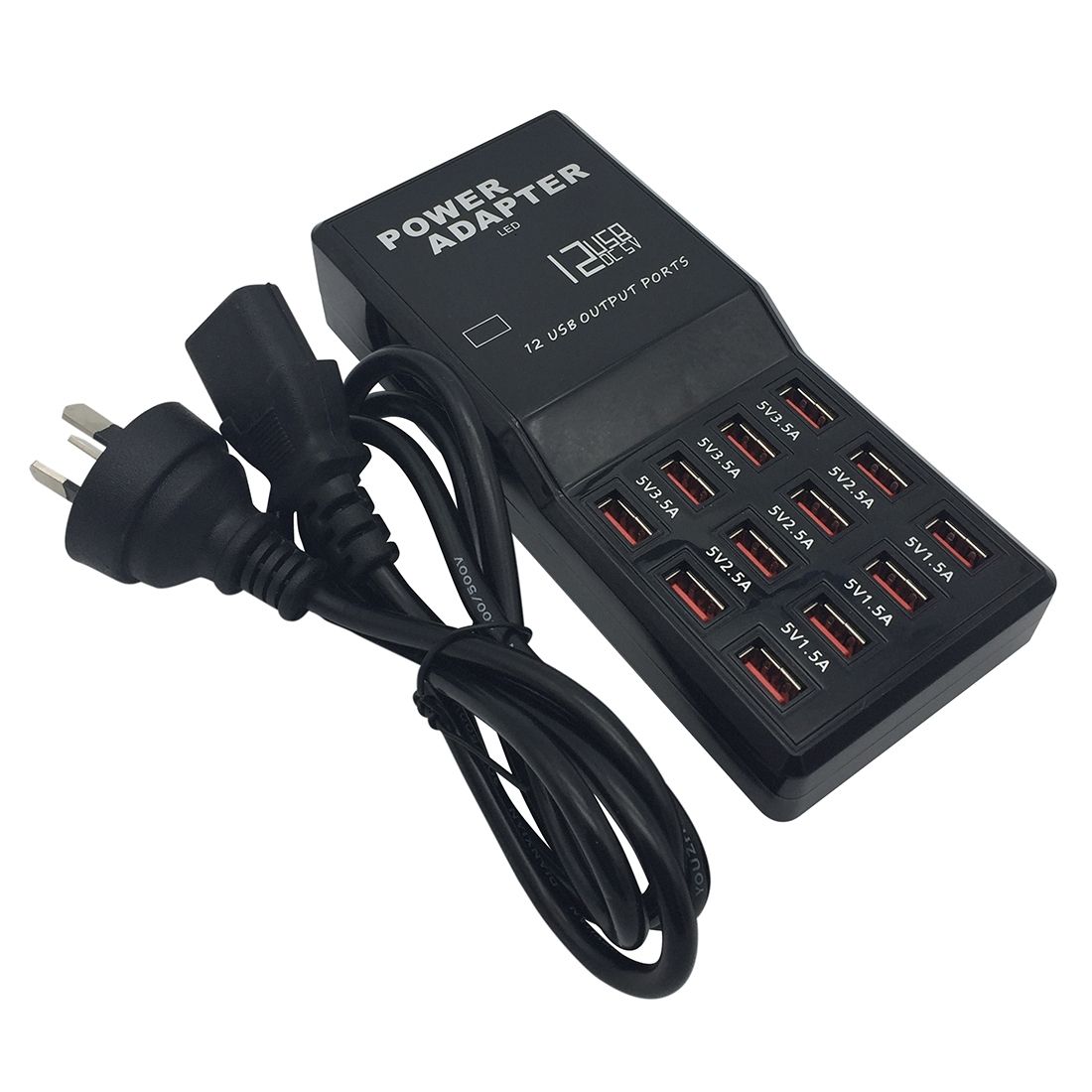 12A 12 Ports USB Fast Charging Dock Desktop Smart Charger AC100-240V, AU Plug (Black)