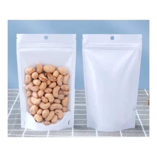 White Pouches With Transparent Front - Size 12cm×20cm - 50pcs Resealable Zip Lock Standup