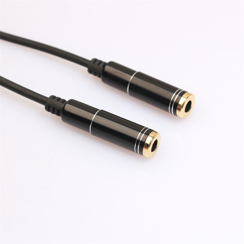 3.5mm audio stereo splitter cable converts a single 3.5mm stereo jack to two 3.5mm stereo jacks.