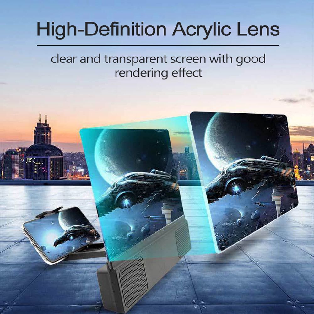 It is very uncomfortable after long time screen watching with small size of phone screen. This product thoroughly solve the problem of the small screen, this product is light weight, small size and easy to carry, suitable for various occasions, energy conservation and environmental protection.