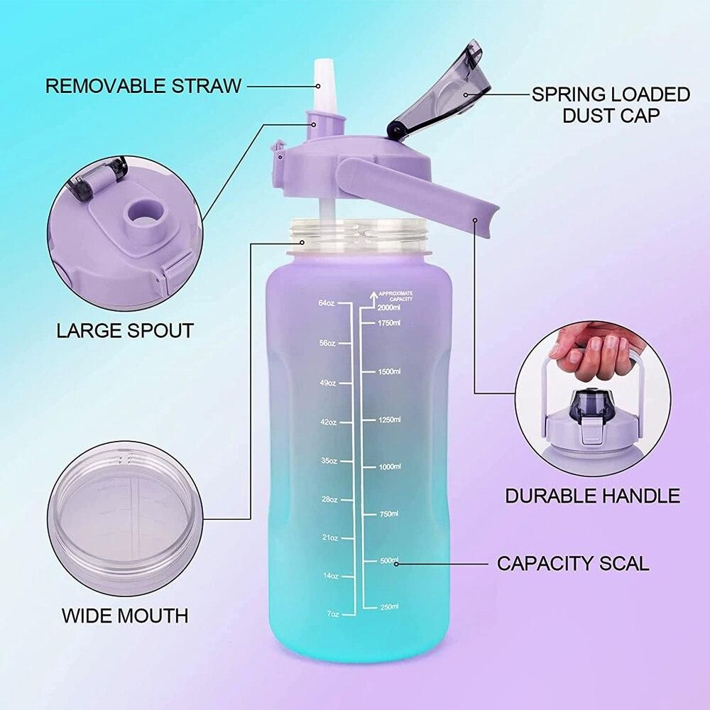 1/2L Large Capacity Water Bottle With Straw High Quality Plastic Gradient Color Cups Outdoor Drinking Kettle Sports Bottleness