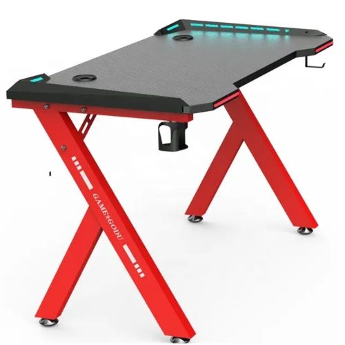 Product DescriptionRGB Led light Professional racing gamer table gaming desk with ABS ProtectorItem No.ColorDescriptionWarrantyCBMMJX-GDR7black,red1- Factory Custom Executive Gaming desks with 3 colors options for LED auto changing lighting 2- E1 grade MFC board as table top,with ABS engineering plastics 3- With cup holder & intimate headset hook & 2 wire boxes 4-