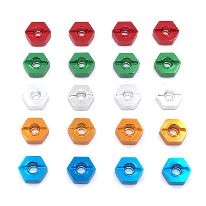 Spe ifi ations: Size: 12mm A li able models: for Wltoys 1:10 104001 remote ontrol ar Weight: 7.5g olor: Green/red/gold/si er/blue (optional)