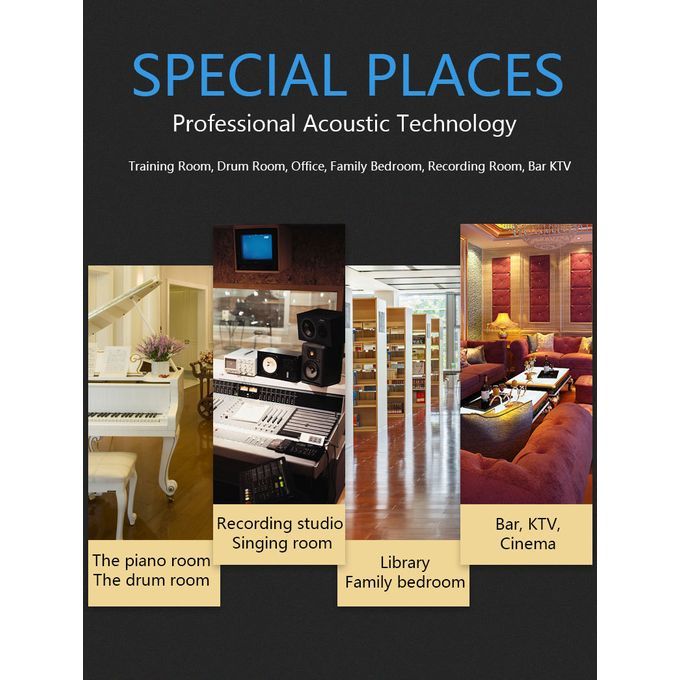 Features: - Reduce Unwanted Noise And The panels help reduce reverb, undesirable acoustic reflections, unwanted noises - Great for spot treating sound on walls in your studio or office. Use to spot treat a professional or home recording studio, commercial or home office, rehearsal space, or home theater. - Make Higher Quality Audio and Video Recording - Improving your audio quality instantly by reducing background noise and while recording your voice overs, music, interviews, podcasts, or YouTube videos. - Easy to shape and cut to size, altering won't affect performance.