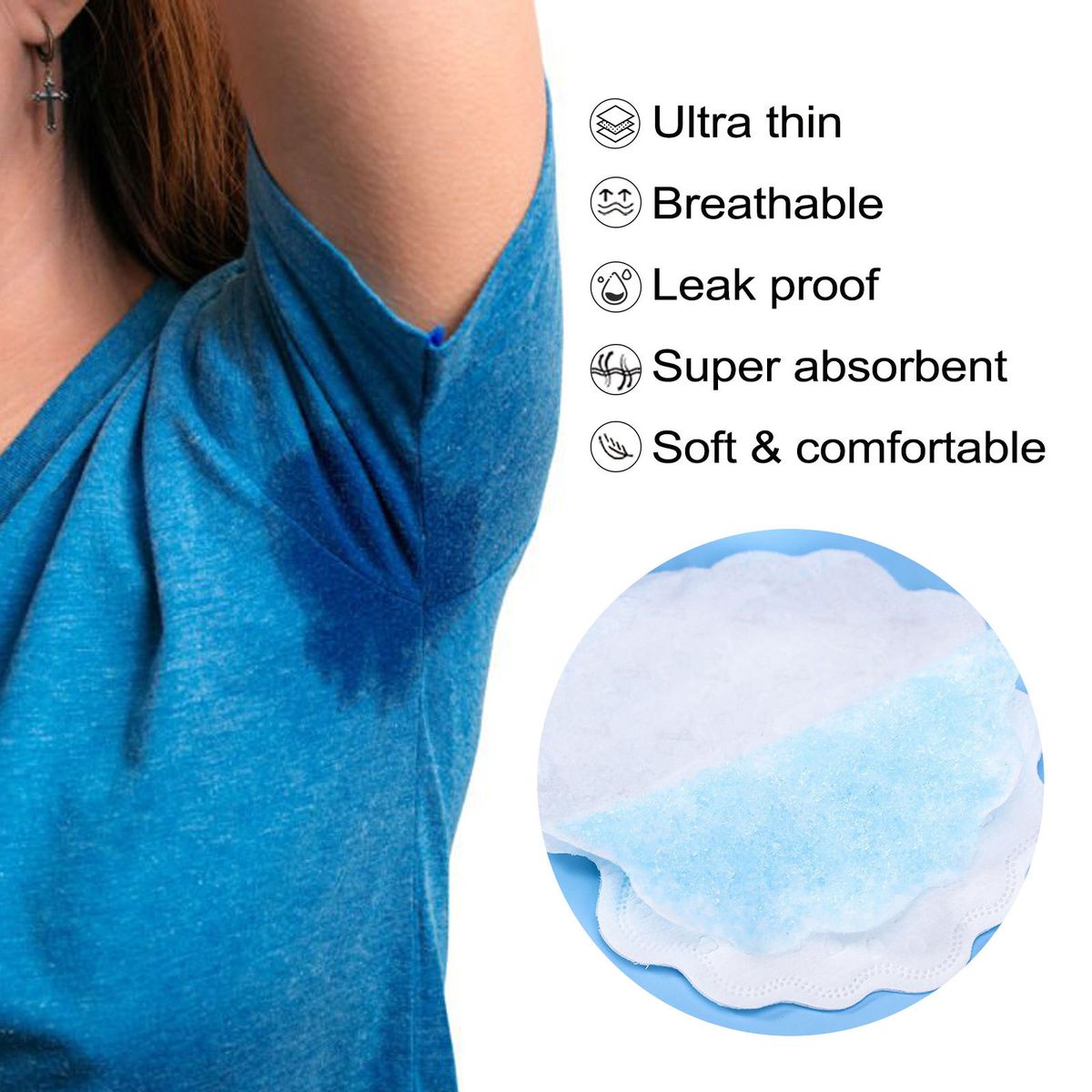 【Comfortable & Portable】Super Soft, ultra-thin and portable, nearly invisible; when using it, simply remove from packaging and attach to the armpit region of your chosen; Excellent air permeability.