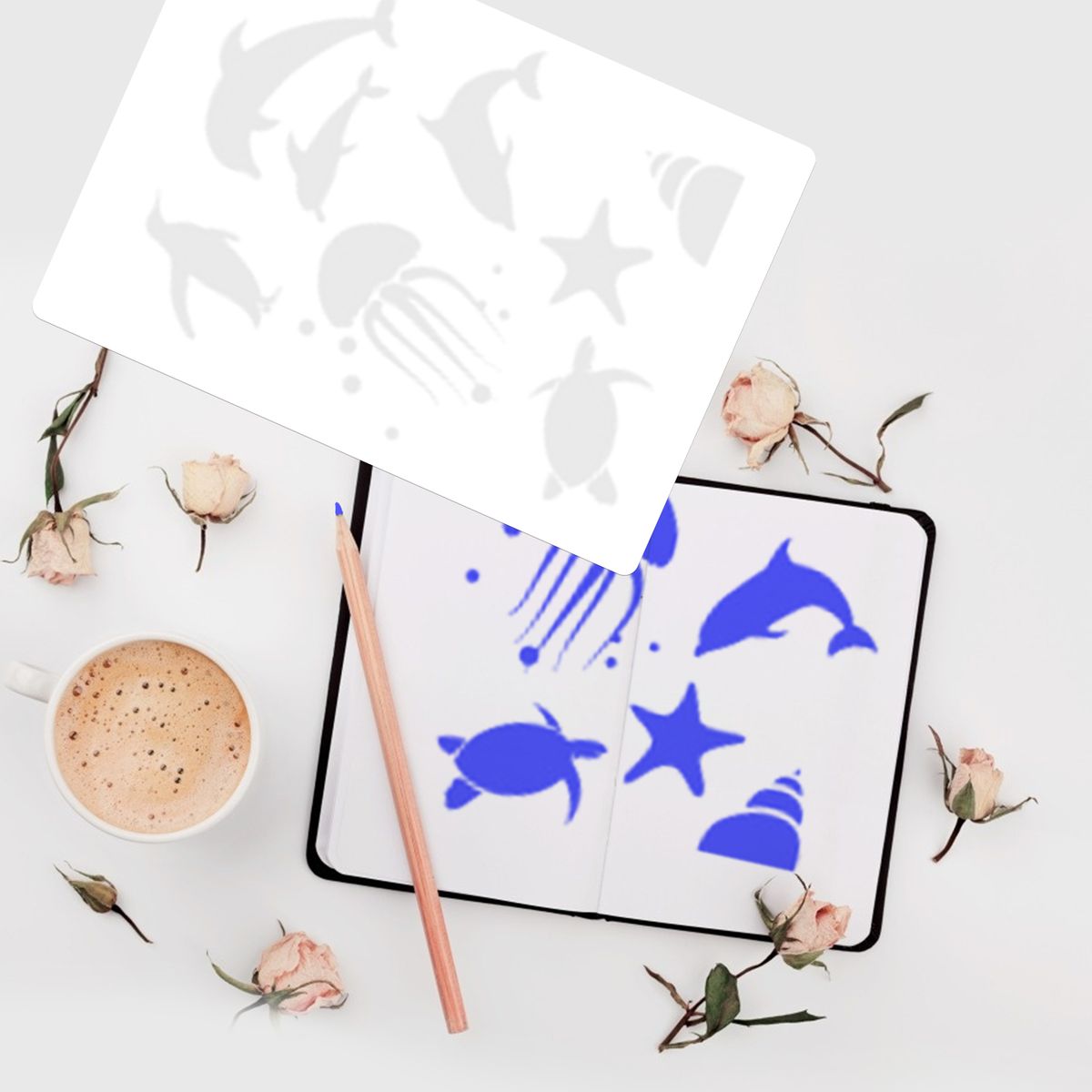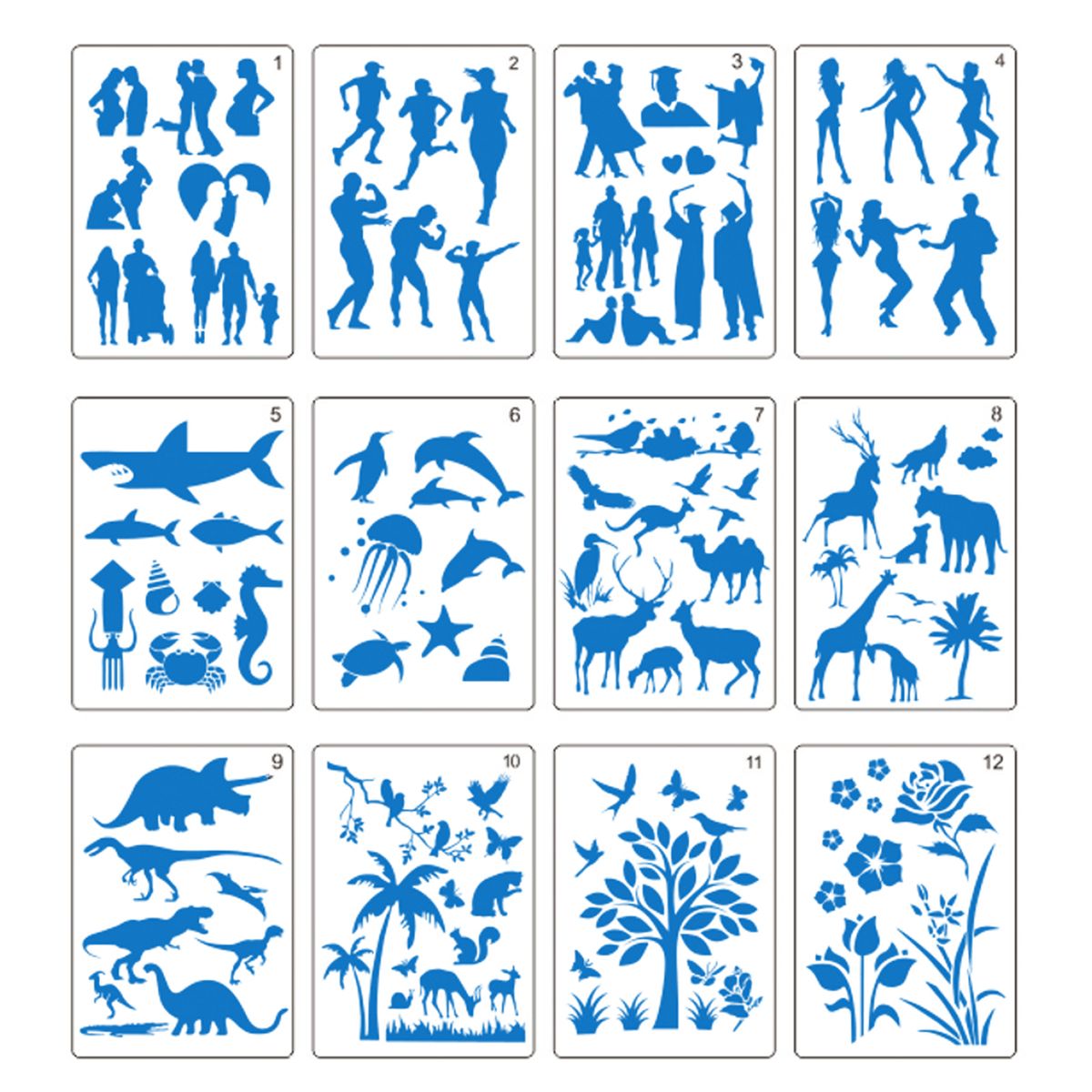 A4 size drawing stencils kit, 12 sheets in total.