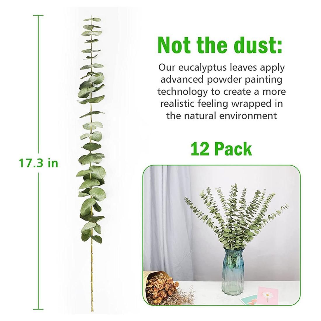 [LENGTH & COLOR]Carefully selected 12 Pack natural dried eucalyptus branches decor,total length is approximately 45 to 55cm(Pls note: due to manual measurement, please allow a slight difference in size).Each stem varies in fullness,you can cut the length of the dried flowers to any size you want to create your own arrangement.